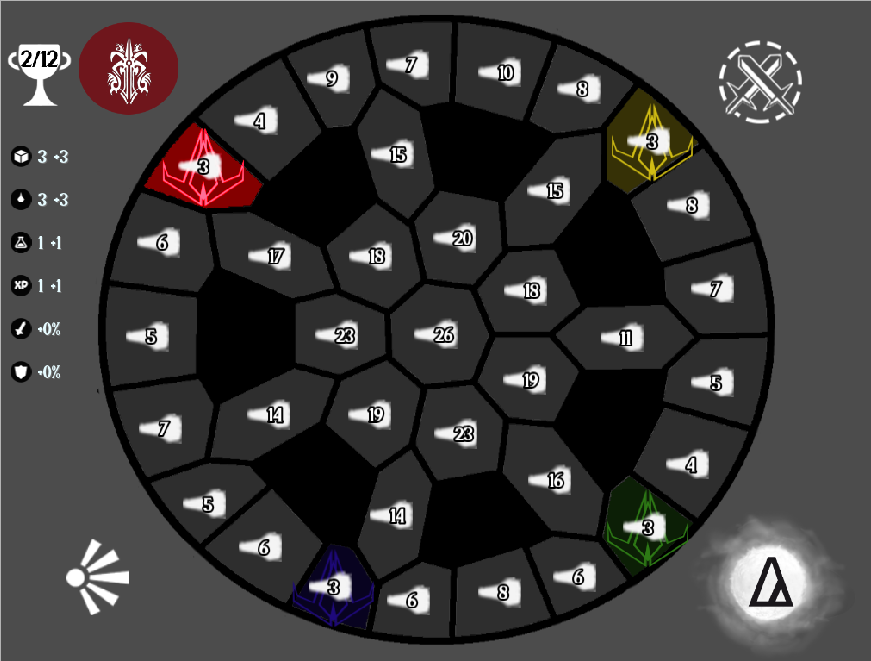 Asylamba Mini is based on the universe of the online multi-player game Asy- lamba and follows the same broad philosophy. Different factions are struggling for galactic dominance. They start with very little and gradually colonise and conquer territories – constantly faced with a delicate balance between building and sending fleets now and investing in base development to ripe the fruits later. In the original version, hundreds of players control the factions, plan- ets are colonised or conquered by individual players for factions to obtain a majority in each sector of the galaxy, and the game takes several months to complete. The mini version is much simplified, with each player directly con- trolling a faction and colonising or conquering sectors of the galaxy, for the game to take only about one hour to complete.
